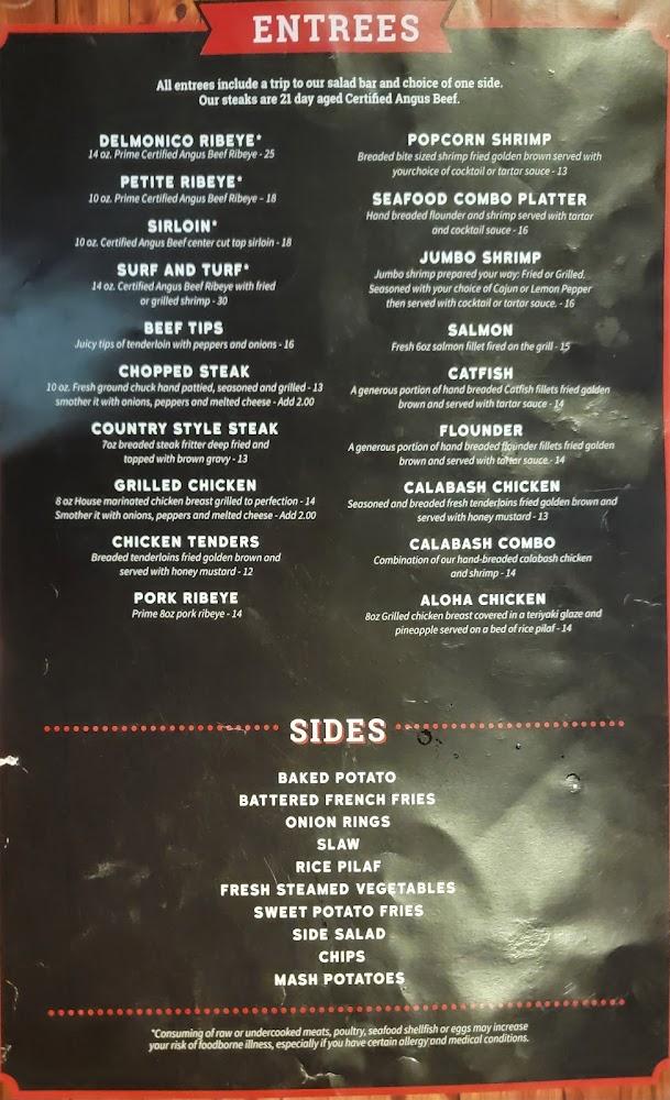 Signature entrees include the Delmonico Ribeye and the famous chicken fried steak. The restaurant also excels in flavorful wings, available in various exciting sauces. A highlight is the salad bar, which offers fresh greens and toppings, giving diners the chance to customize their salads.